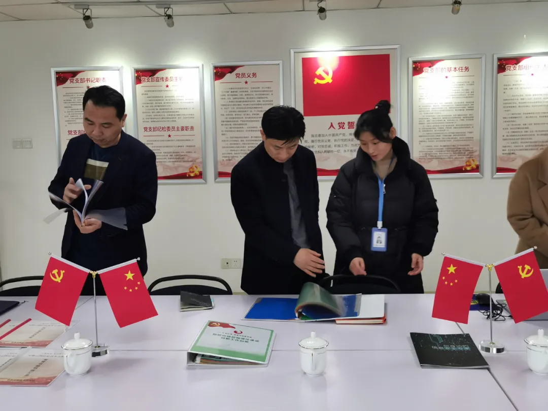 领导一行首先参观了公司的办公环境,随后来到党员活动室,参观了党支部党建工作宣传栏,查看了欧陆注册党建小报,了解在册党员情况,为公司党建工作提出了指导性意见。?