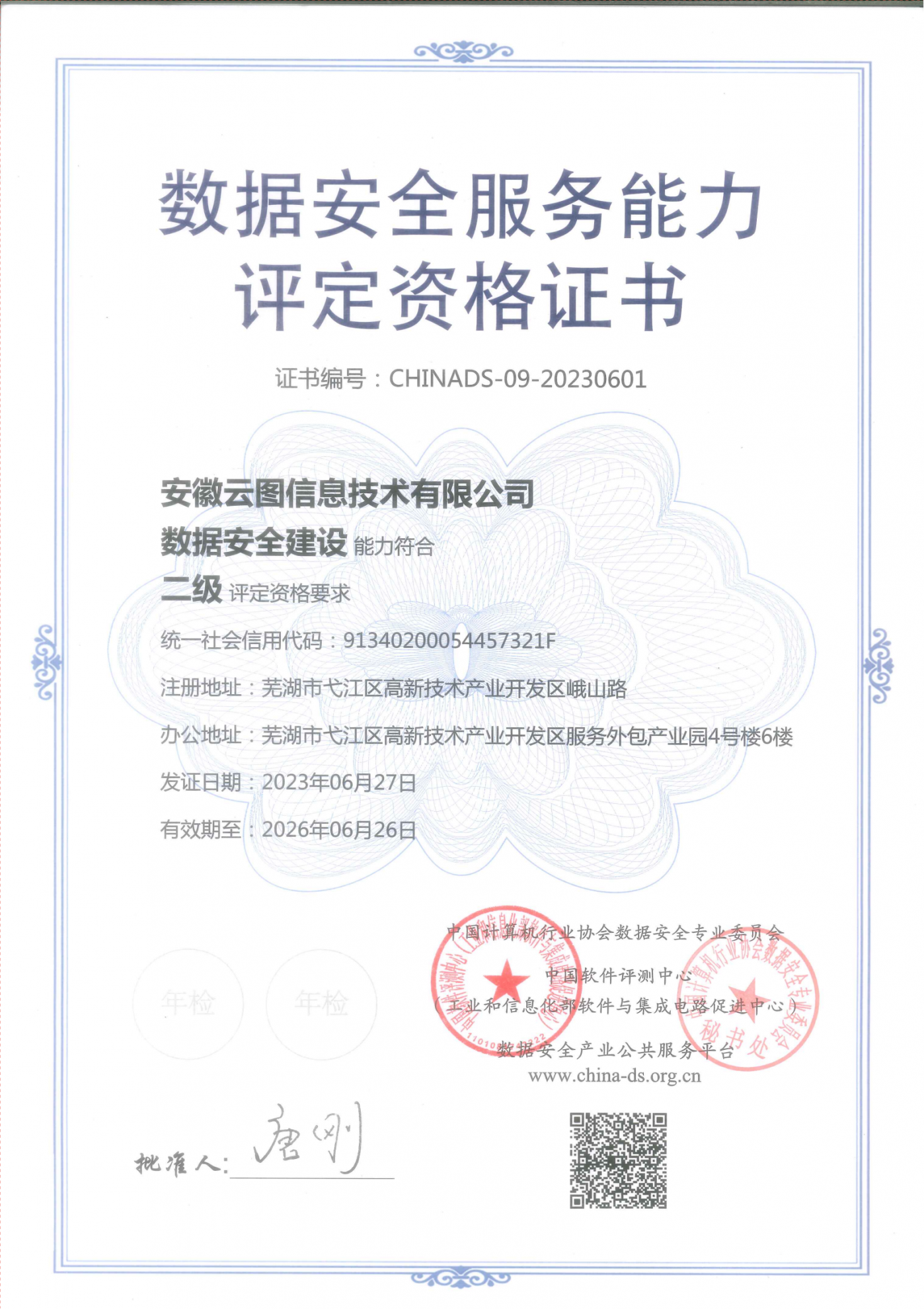 ? ? ? 安徽欧陆注册信息技术有限公司作为一家领先的信息安全服务提供商,多年来一直致力于为客户提供全面的数据安全保障解决方案。此次通过数据安全建设能力二级资格验证,不仅是对我司技术实力和服务水平的认可,更是对我司在数据安全领域持续投入与创新的肯定。